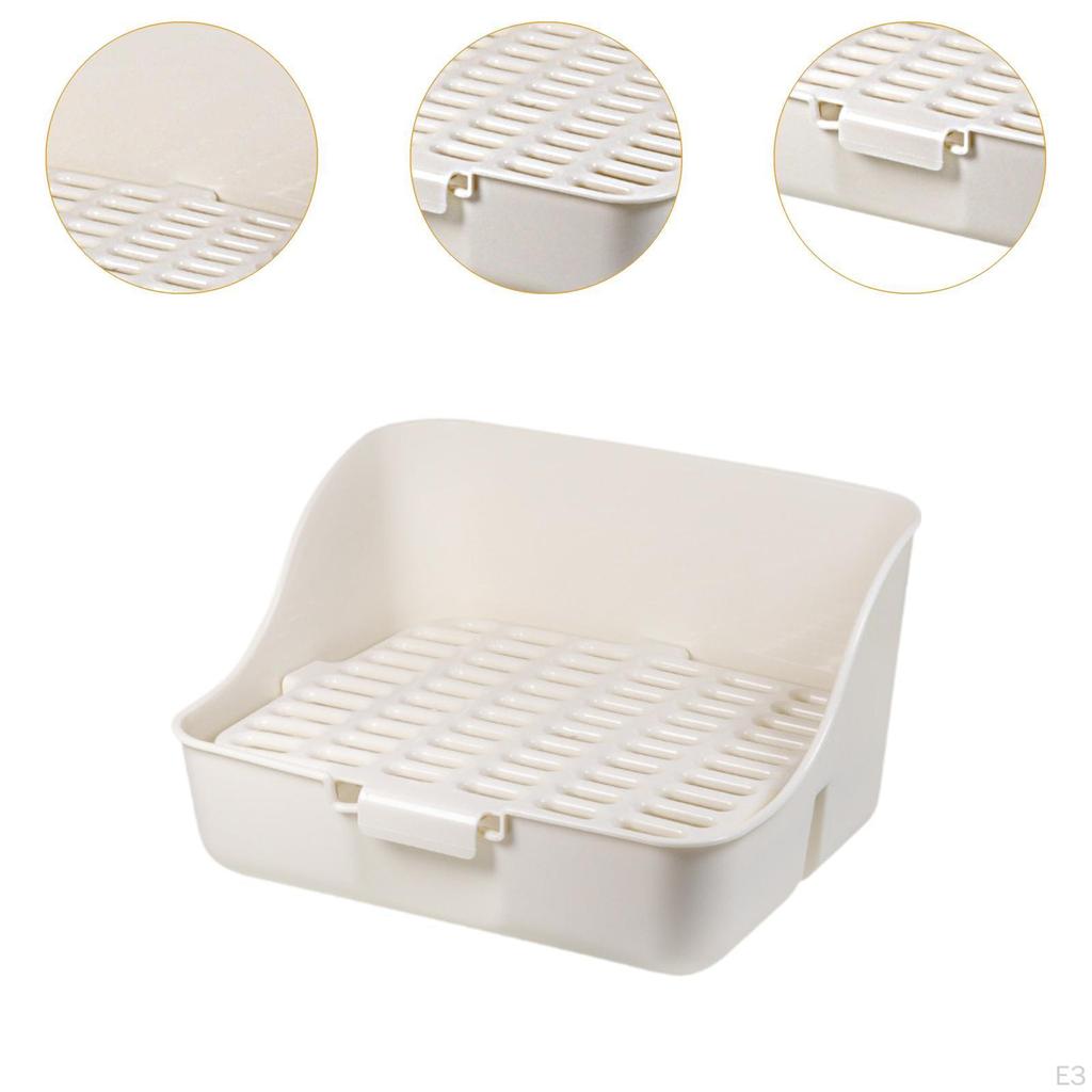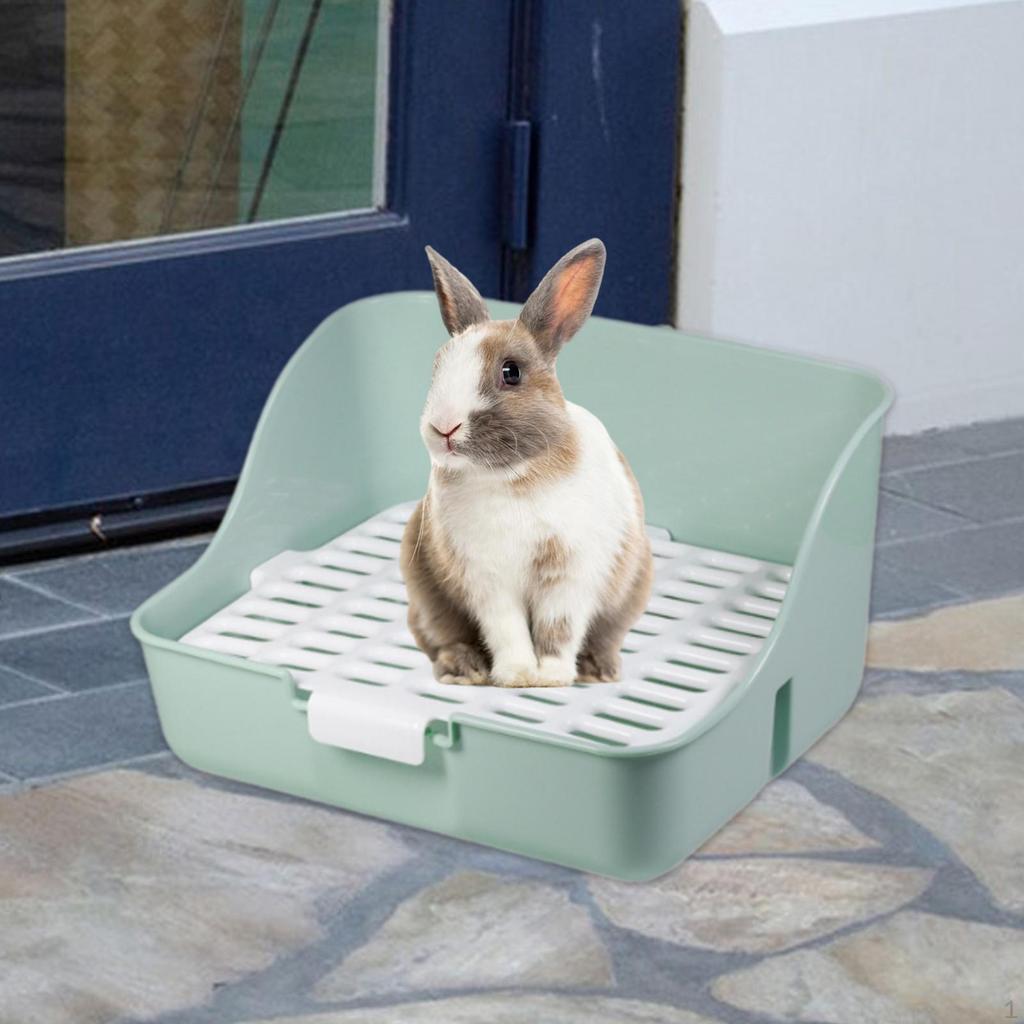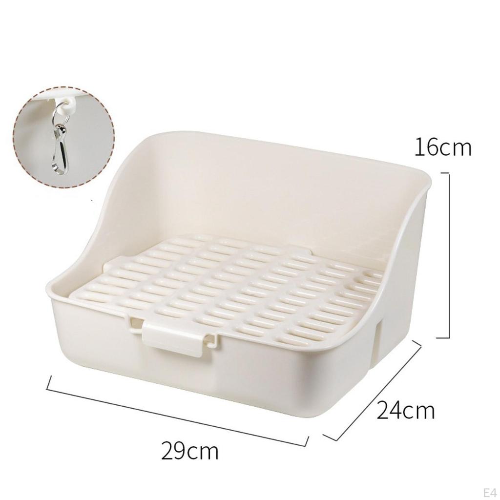 - 【Дизайн сетки】: Туалет для кроликов оснащен подходящим сетчатым фильтром, дно гладкое, не натирает лапки, и лапки животного чувствуют себя комфортно.