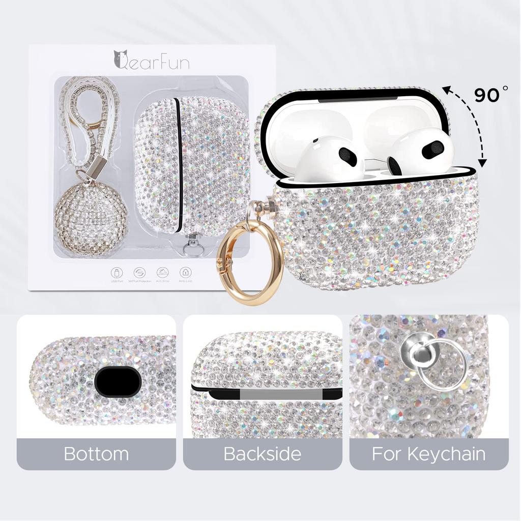 QearFun Роскошный чехол со стразами для AirPods 3-го поколения, защитный чехол с бриллиантами, чехол для зарядки AirPod 3, блестящий чехол для Airpod 3-го поколения, подарочный чехол, накладка, (Серебряный)