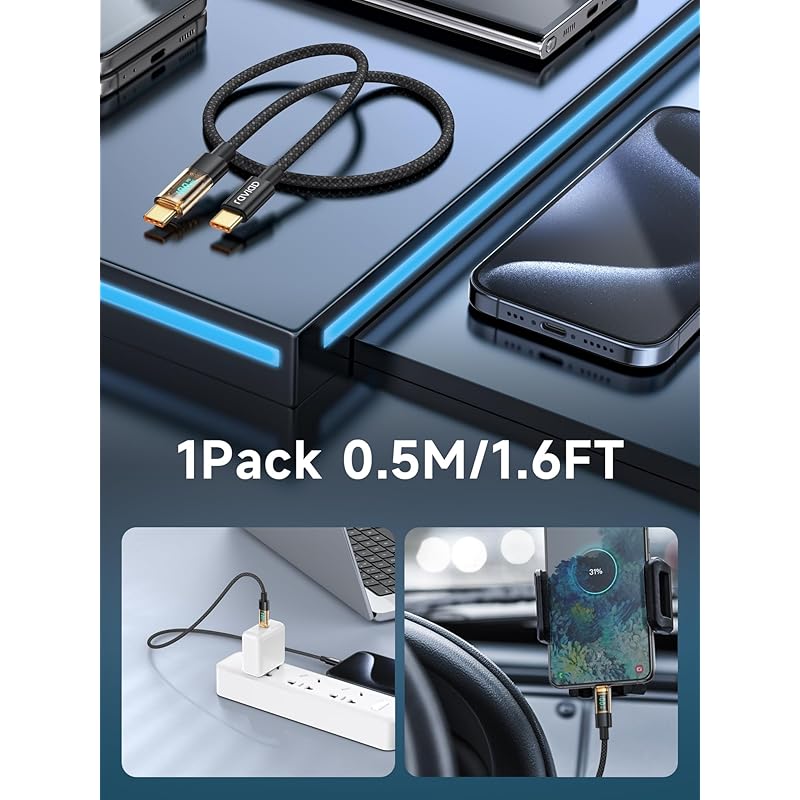 [Кабель для зарядки со светодиодным дисплеем мощности] Цифровой светодиодный дисплей этого кабеля USB C - USB C в режиме реального времени отображает четкие и точные данные о потоке энергии, поступающей на ваше устройство, чтобы вы могли контролировать быструю зарядку. Я сделаю это возможным для вас. Кабель USB Type C позволяет легко определить, может ли блок питания действительно выдавать указанную мощность.