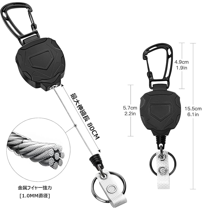 [Материалы и характеристики]: Содержимое пакета: 1 катушка, катушка-брелок + 1 держатель для ID-карты. Катушка-брелок из АБС-пластика (тело), сплав цинка (карабин), зажим для бейджа ПВХ, чехол для ID АБС-пластик, металлическая проволока (шнур), вес: приблизительно. 90G, телескопическая длина: приблизительно. 80см. Он может выдержать вес большинства ключей, не соскальзывая.