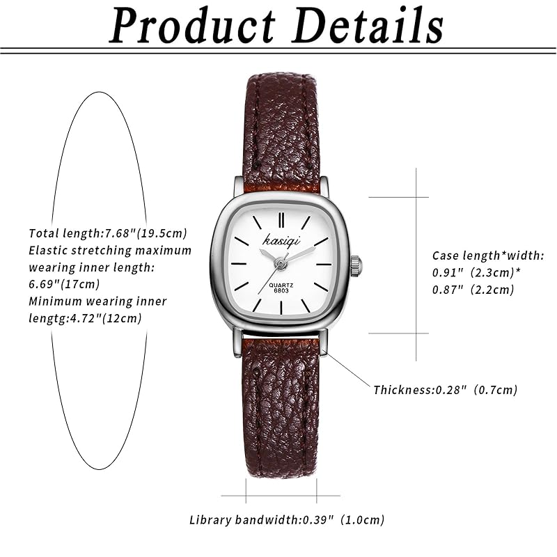 [We provide "JewelryWe" gift bags] Not only can they be used as gifts, but they can also be used for personal storage.[Specifications] Movement: Quartz Material: Synthetic leather + alloy Case (2.3cm) * (2.2cm) Case thickness (0.7cm) Strap width (1cm) Watch length (12cm-17cm) Weight: 16g