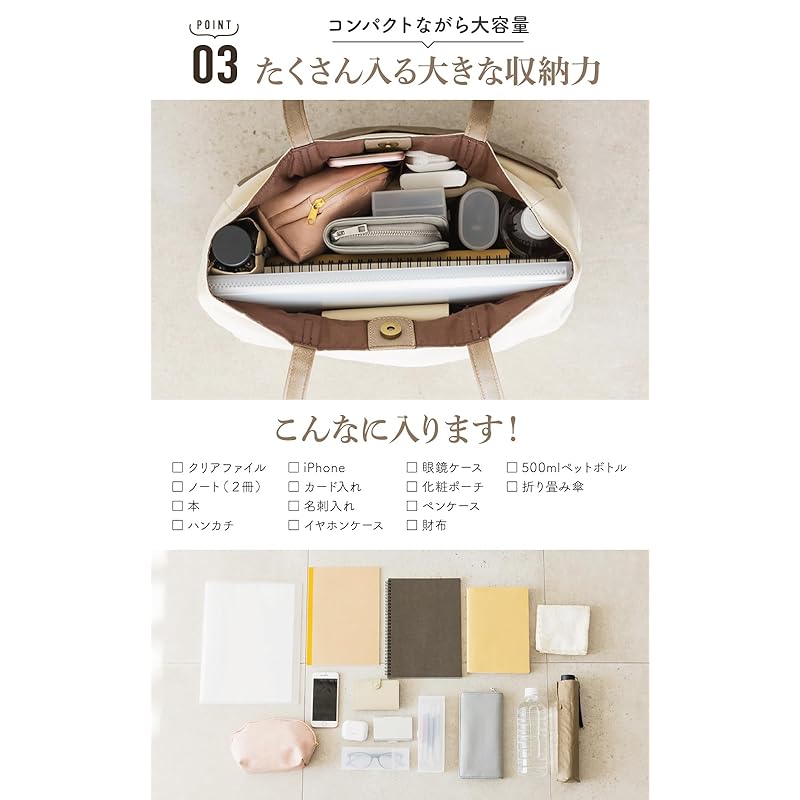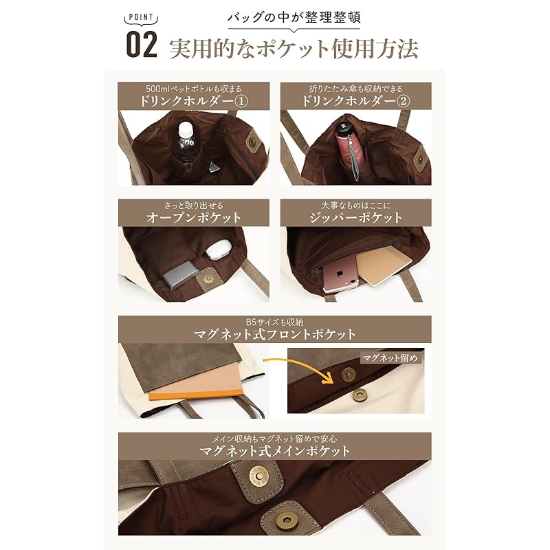 [6 storage pockets] Miworna tote bag ladies pocket large canvas canvas A4 large capacity lightweight commute men's Smaller faux leather light gray x