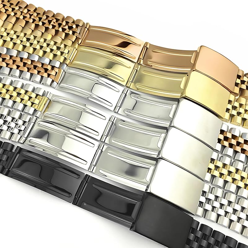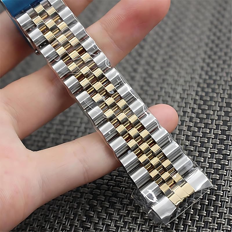 Это замена браслету Jubilee. (5 браслетов) для ваших наручных часов. Есть 5 соединительных частей (кадры), а детали создают прекрасный образ, подходящий к нарядным часам. Множество звеньев аккуратно соединены, обеспечивая мягкую и удобную посадку на запястье.