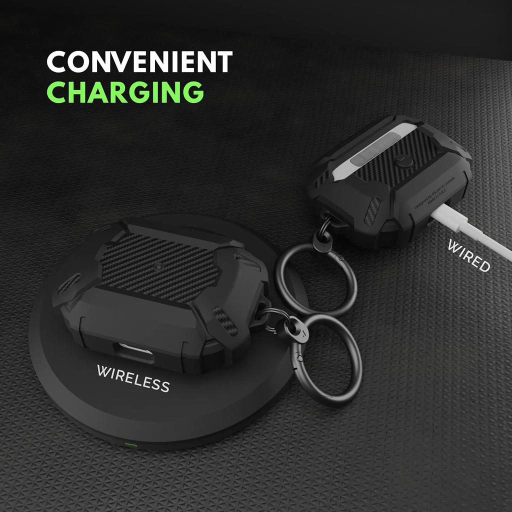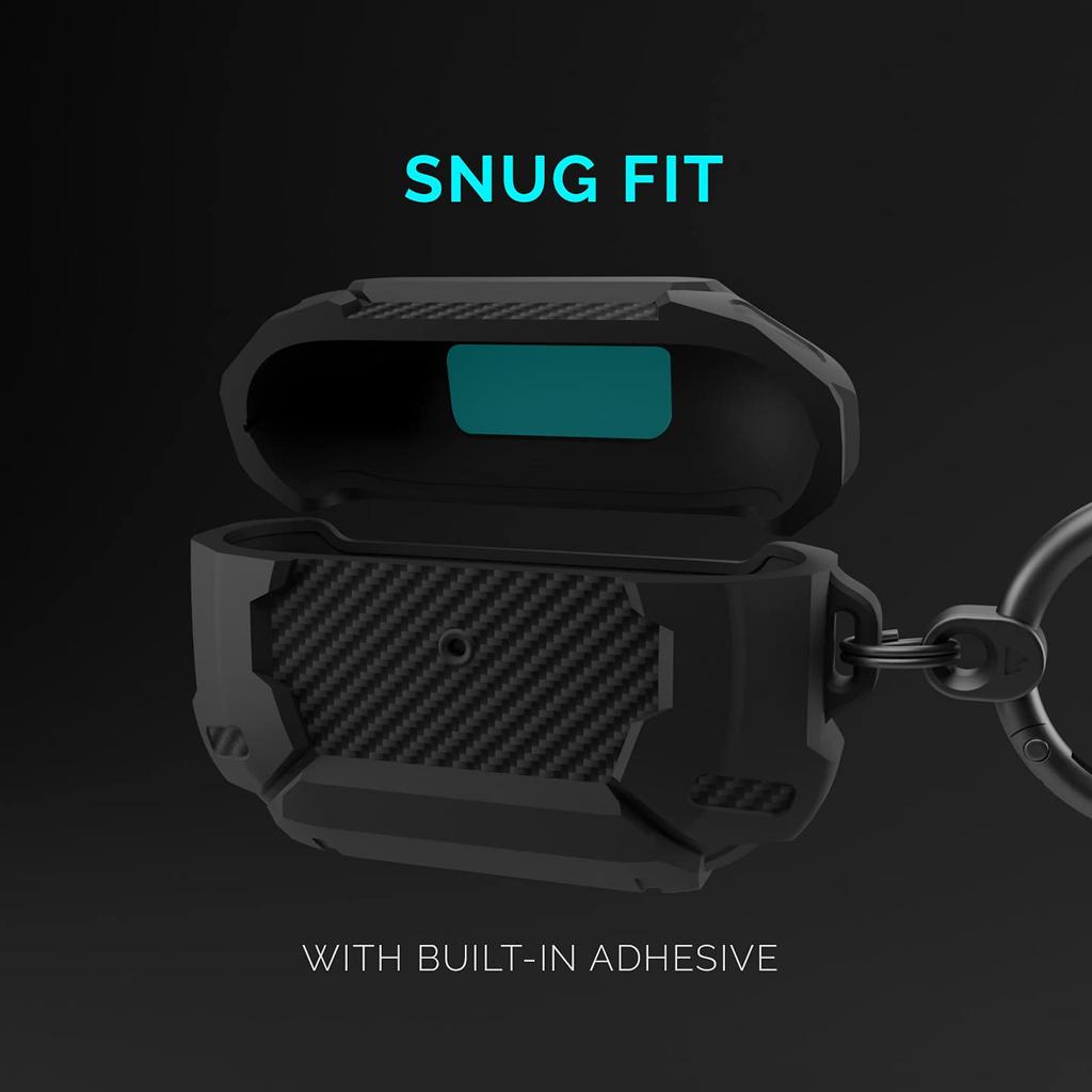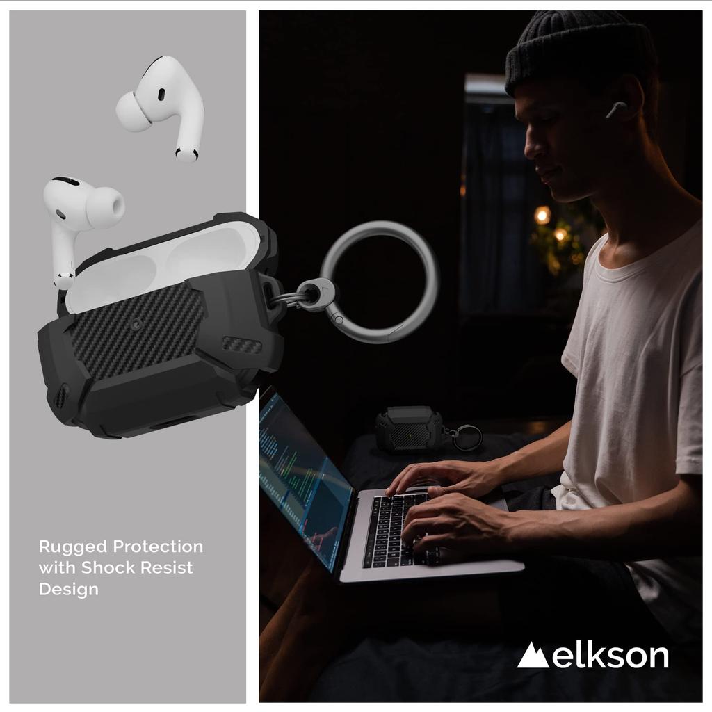Чехол ElksonExia Series Military AirPods Pro, защитный чехол для всего корпуса с брелоком для AirPods Pro, черный