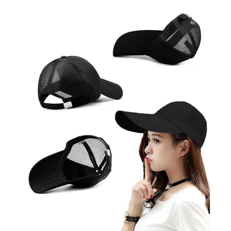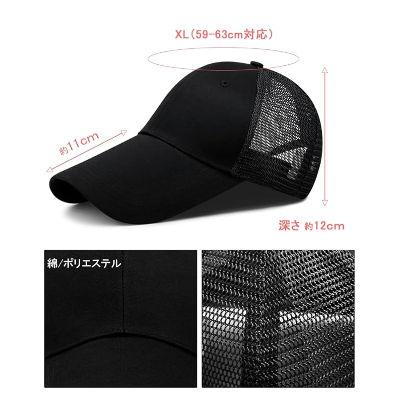 [Spargel] long brim hat mesh cap Large size (up to 63cm) long brim baseball cap Men's/Women's (black)
