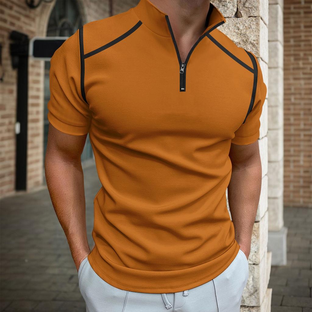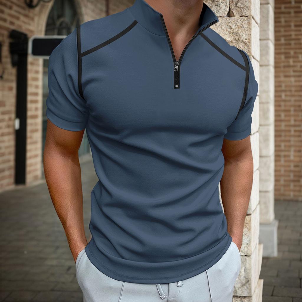 Мужские футболки с коротким рукавом для гольфа, повседневная легкая рубашка, стильная рубашка с воротником-поло на молнии до середины груди