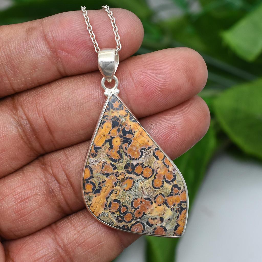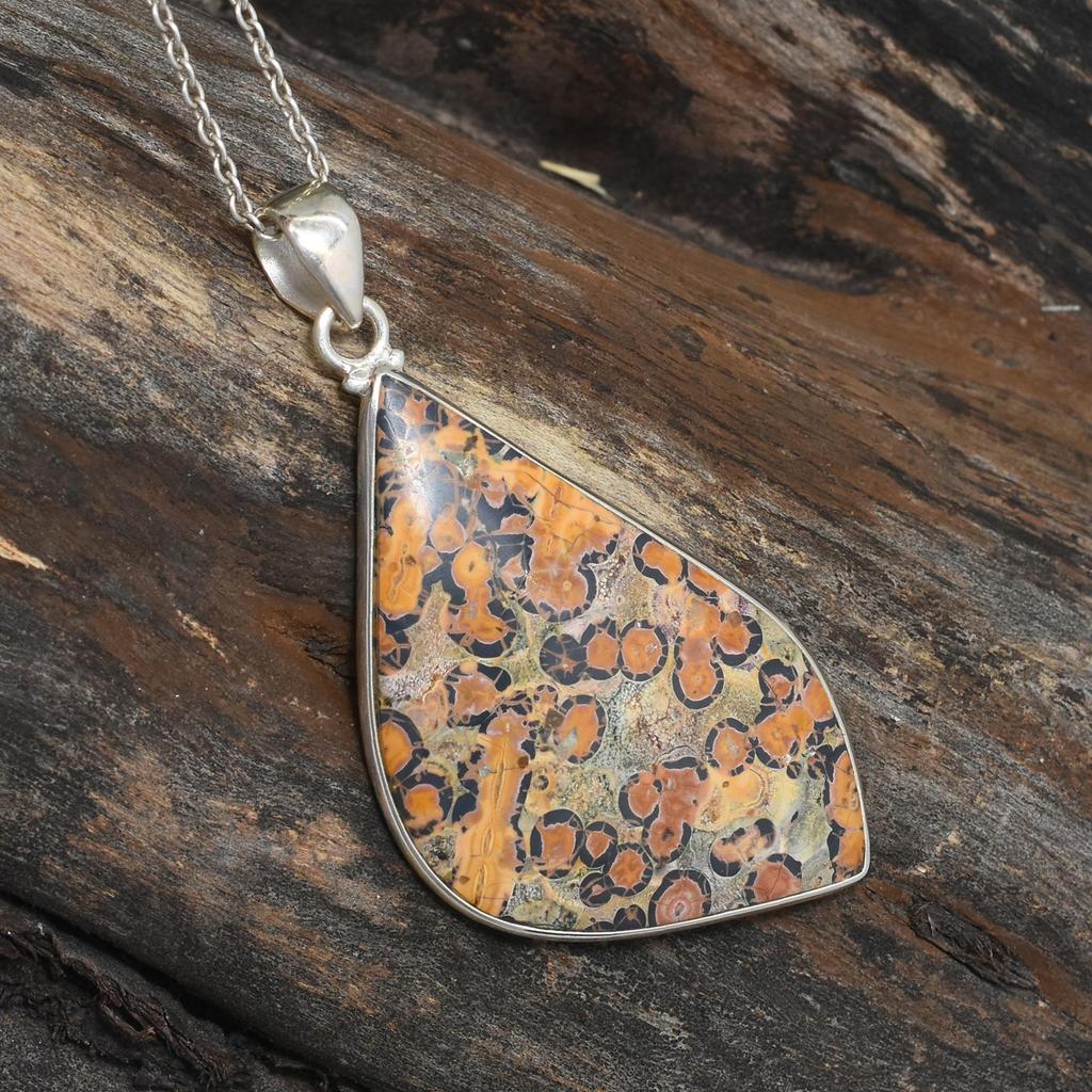 Natural Leopard Skin Jasper Pendant, 925 Sterling Silver Necklace, Handmade Pendant Necklace, Leopard Skin Jasper, gemstone Necklace