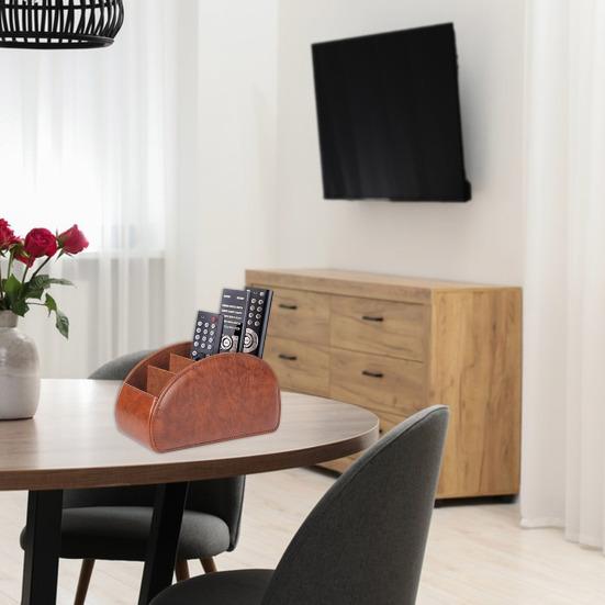 Изготовленный с точностью, наш органайзер для пультов дистанционного управления может похвастаться роскошной внешней отделкой из искусственной кожи и мягкой внутренней подкладкой.. Прочная конструкция защищает ваши пульты от царапин и повреждений, добавляя элегантности любому помещению.