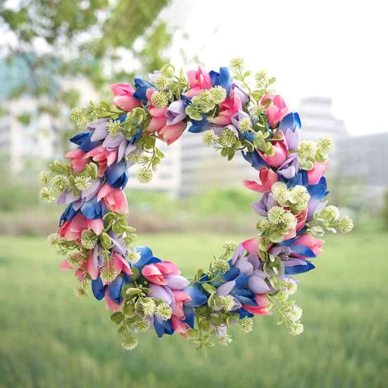 Оцените красоту и универсальность нашего тюльпанового венка, в котором гармонично сочетаются стиль и функциональность.. Независимо от того, устраиваете ли вы вечеринку или просто украшаете свое пространство, этот венок станет универсальным акцентом, который дополнит любую обстановку.