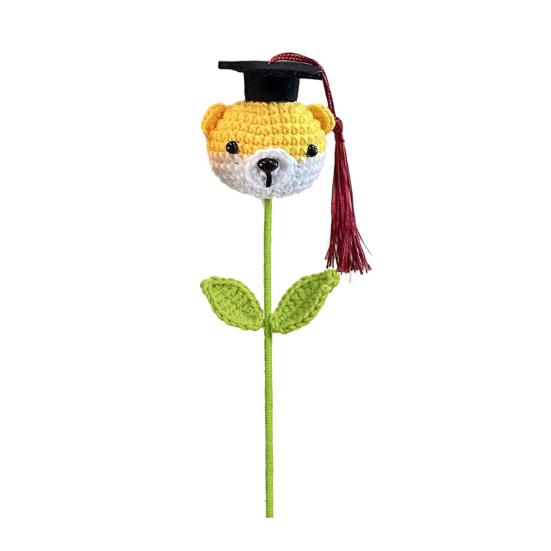 Отпразднуйте особые случаи с нашим уникальным вязаным крючком цветком! Сплетенный вручную с любовью и заботой, каждый букет посвящен теме выпускного с реалистичными деталями, такими как шапочка выпускника и листья..