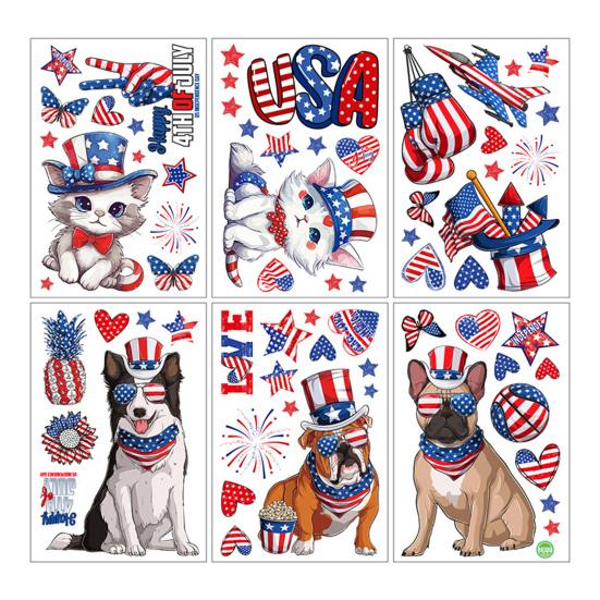 Классические элементы Дня независимости: Получите 6 многоразовых наклеек на окна размером 11,8x7,87 дюймов, украшенных культовыми красными и синими звездами, полосками, милыми животными и текстом «С 4 июля». С легкостью наполните свое окружение праздничной и патриотической атмосферой.