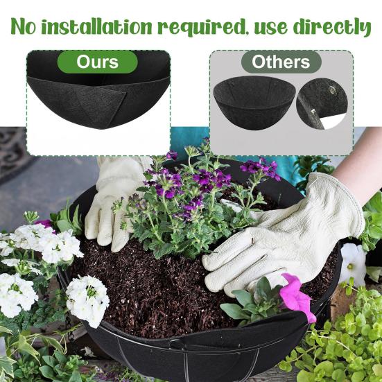 Настраиваемая посадка: Благодаря уникальному дизайну застегивающейся ленты и ручной прострочке наши усовершенствованные внутренние поддоны для растений можно легко подогнать под различные формы подвесных корзин, удовлетворяя ваши конкретные потребности.