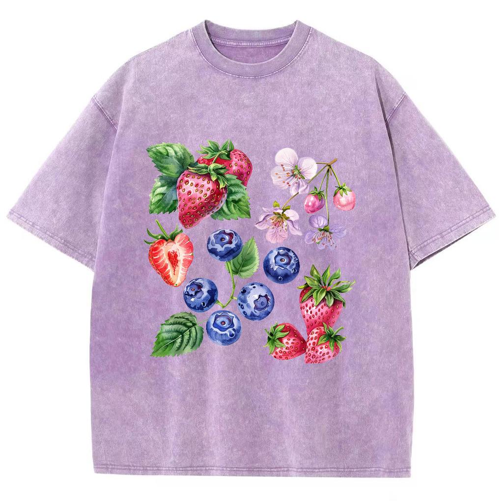 Летняя женская футболка Распродажа женской одежды Оверсайз Клубничный принт Стираный топ Harajuku с коротким рукавом Повседневный