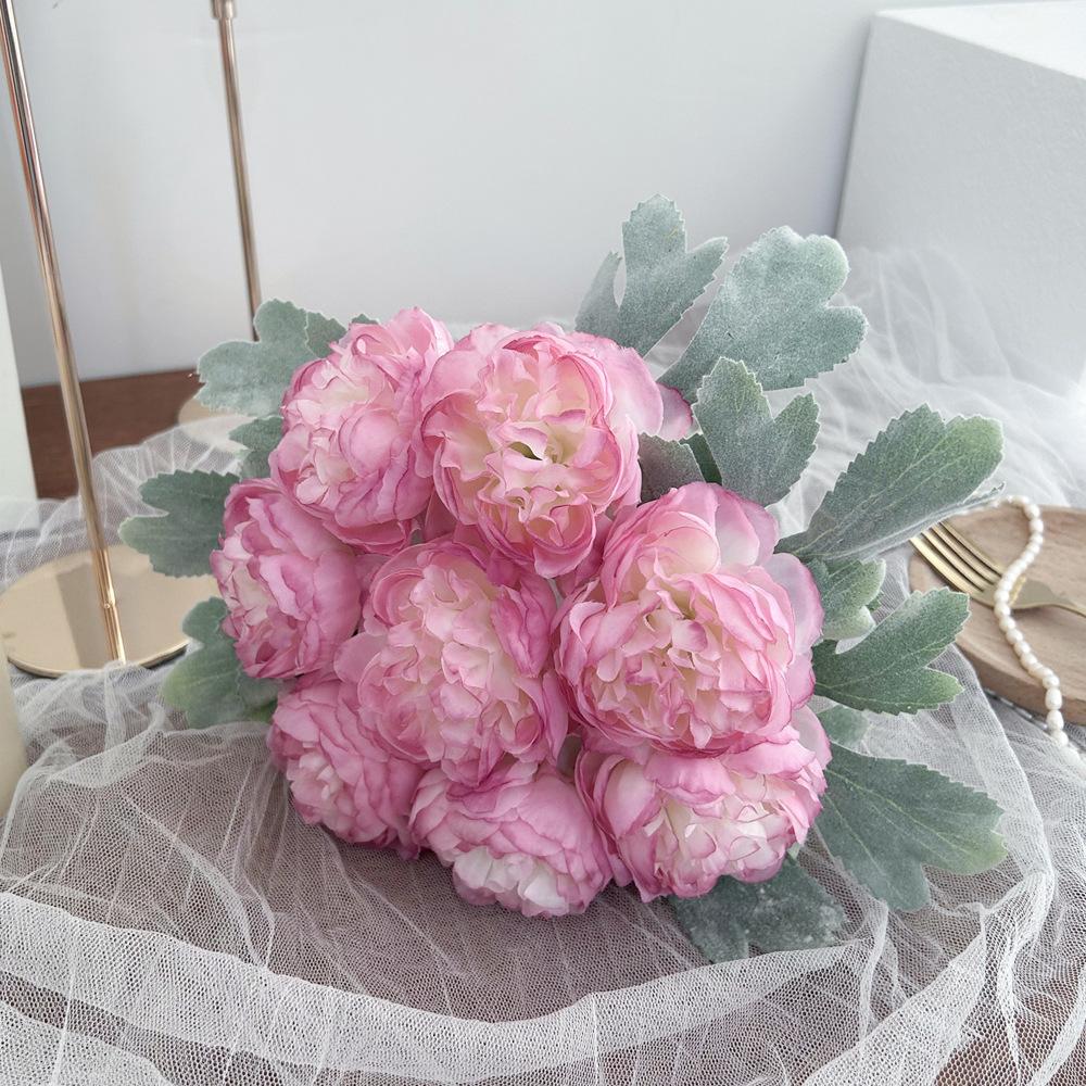 Ins Nordic Style Flocked Peony Flower High Imitation Home Living Decoration Искусственный цветок Роса Лотос Имитация Цветка