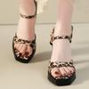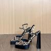 Женские водонепроницаемые босоножки на платформе 2025 года, летние, сексуальные, с квадратным носком, с леопардовым принтом, с застежкой на щиколотке, на толстом каблуке, женские босоножки-бойцы