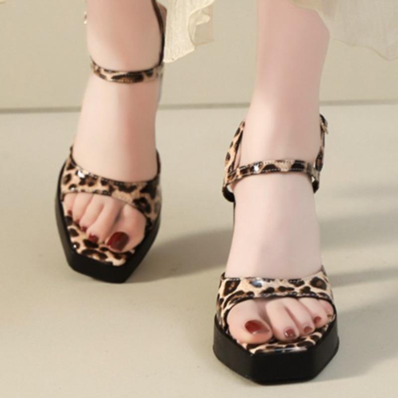 Женские водонепроницаемые босоножки на платформе 2025 года, летние, сексуальные, с квадратным носком, с леопардовым принтом, с застежкой на щиколотке, на толстом каблуке, женские босоножки-бойцы — купить товар онлайн с бесплатной доставкой по всему миру!