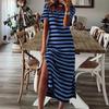 Женское полосатое платье миди с разрезом по бокам и V-образным вырезом с коротким рукавом, повседневное, свободное праздничное платье