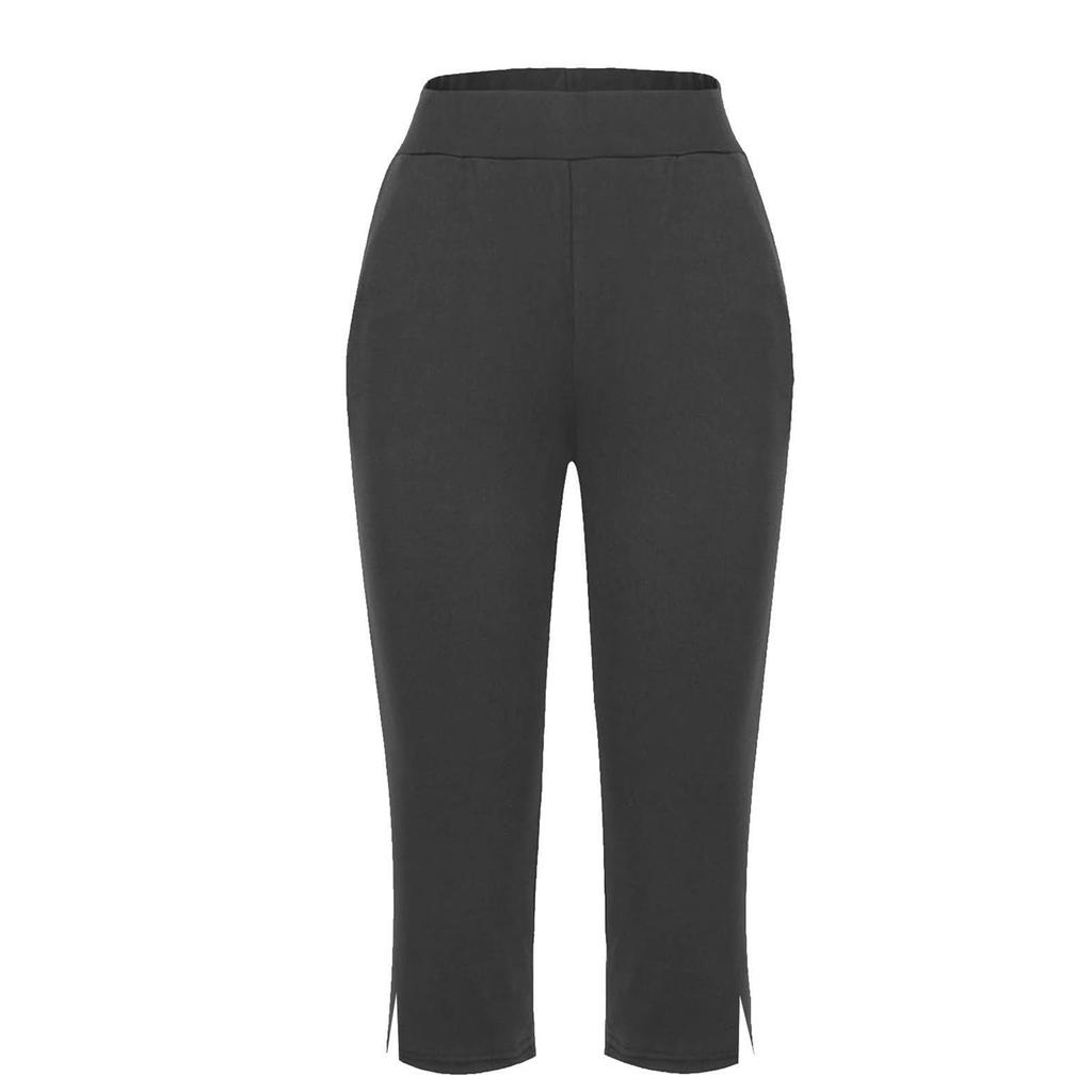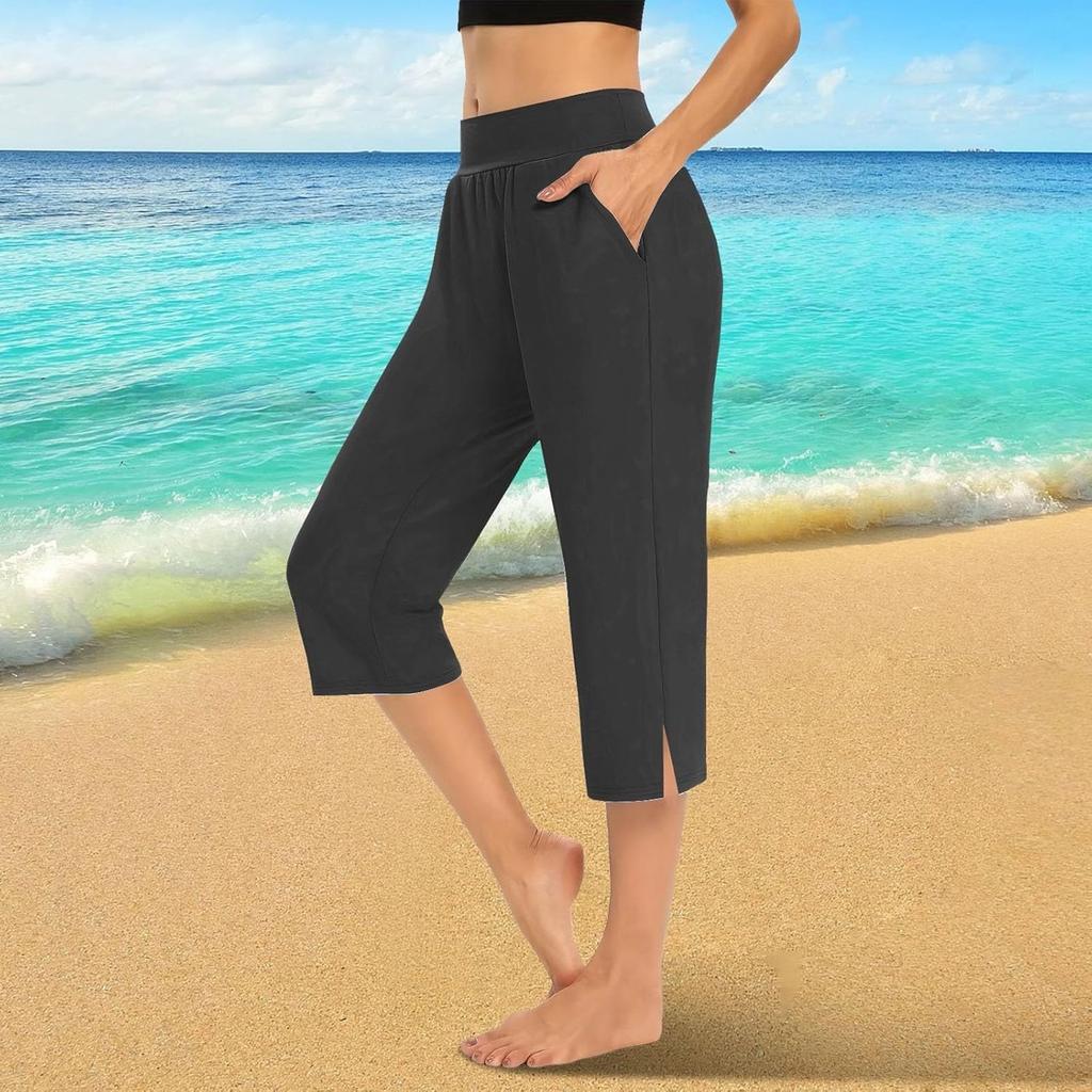 Женские эластичные брюки 3/4 с высокой талией, повседневные брюки-капри с широкими штанинами для активного отдыха, брюки с карманами