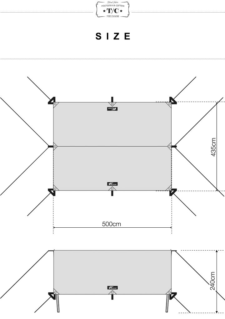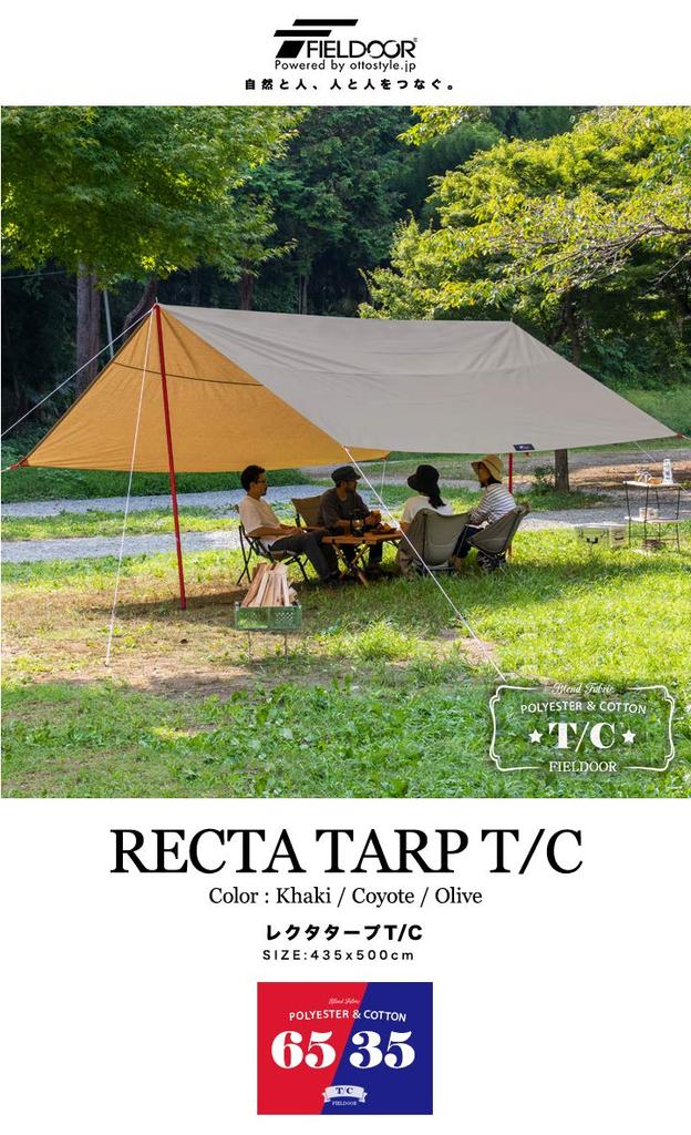 FIELDOOR Rectatarp Огнестойкий поликоттон для хранения с сумкой для хранения, веревкой, колышком, алюминиевыми гибкими фитингами T/C [хаки] + + +
