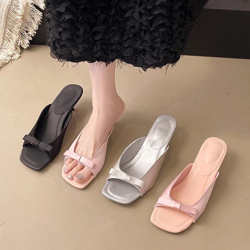 Женские тапочки на тонком каблуке с квадратным носком, с бантом-бабочкой, женские платья, универсальные, модные, элегантные, односложные, Zapatillas De Mujer
