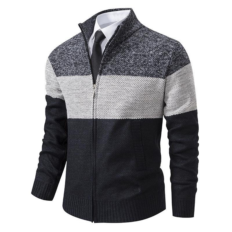 Осенне-зимний флисовый утолщенный свитер, вязаный свитер, кардиган с воротником-стойкой, мужская верхняя одежда в тон, шерстяная куртка