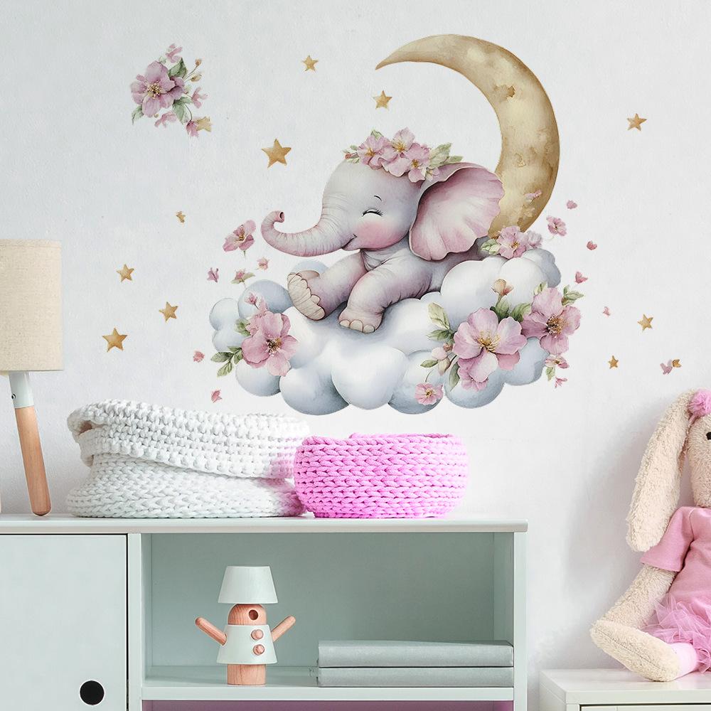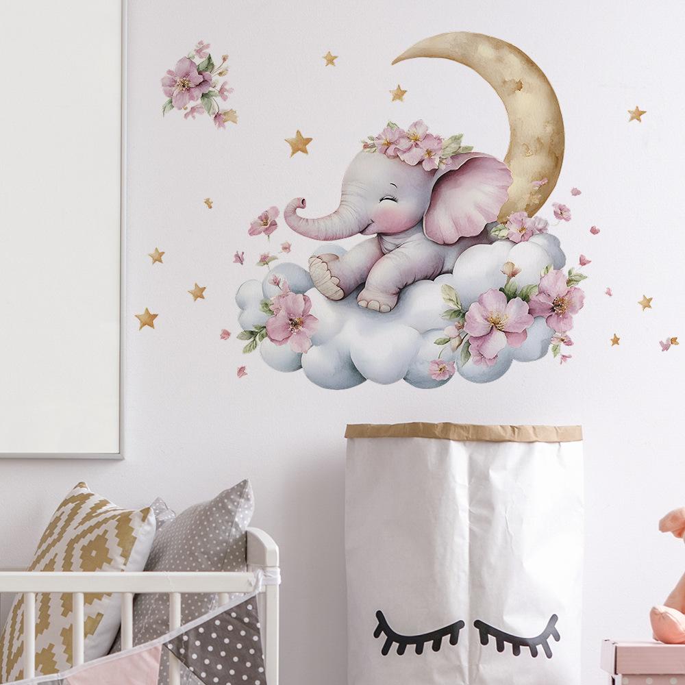 Милый слон облака луна спальня гостиная домашний фон украшение украшение настенные наклейки