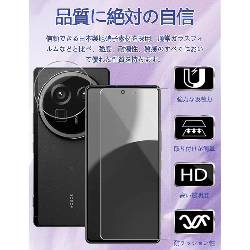 👍[Super value 2+2 piece set/Please read before ordering/Compatible models] Compatible with AQUOS R9 pro type! AQUOS R9 pro 2 pieces tempered glass screen protective film and AQUOS R9 pro A combination of two lens films provides all-round protection.