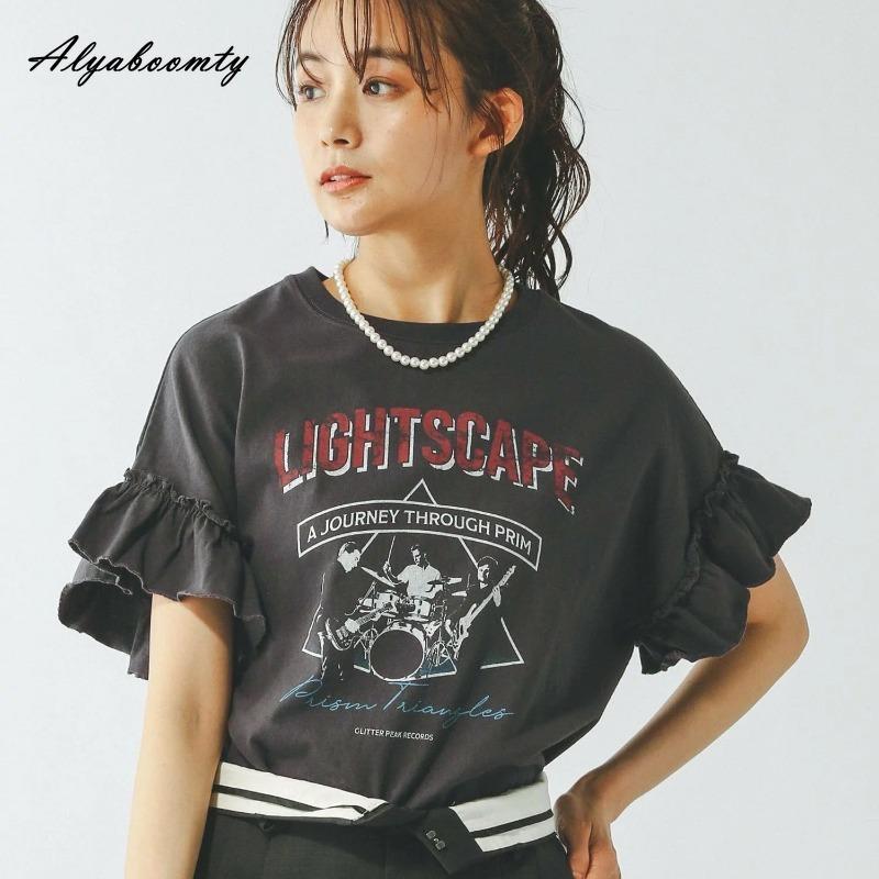 Корейская мода летняя женская мешковатая хлопковая футболка с круглым вырезом, белая, серая, с буквенным принтом, повседневная свободная футболка с расклешенными рукавами, женская базовая футболка
