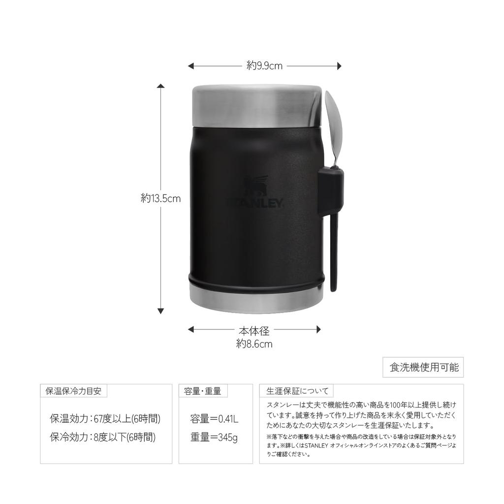 STANLEY Classic Вакуумный термос для еды Черный Переработанная нержавеющая сталь Термос для обеда Термос для супа Ланч-бокс Безопасно для посудомоечной машины Гарантия Японский 0,41 л 2.0 Термальный/Холодный