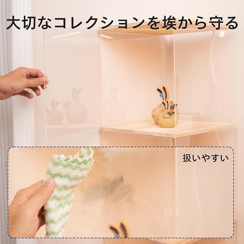 [Простота обслуживания] Передняя дверца позволяет легко менять расположение фигурок, защищает вашу драгоценную коллекцию от пыли, всегда выставляет ее в чистом состоянии и делает обслуживание удобным.