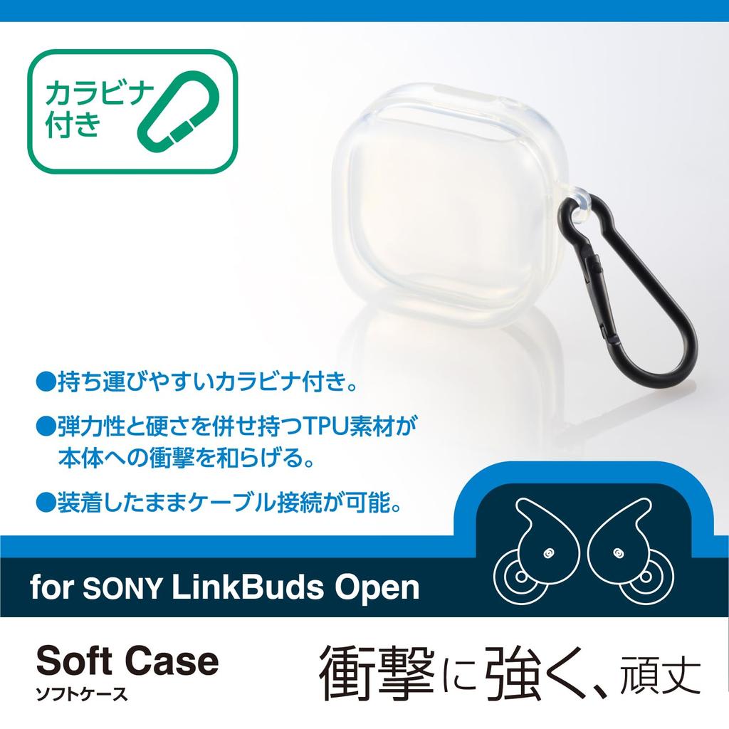 ELECOM Earphone Case LinkBuds Open Can be charged while in the case Shockproof carabiner included TPU material Clear TWS-SO242UCCR