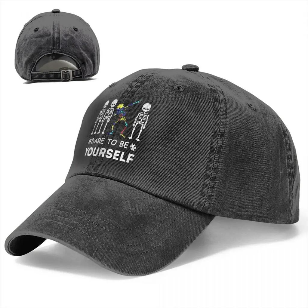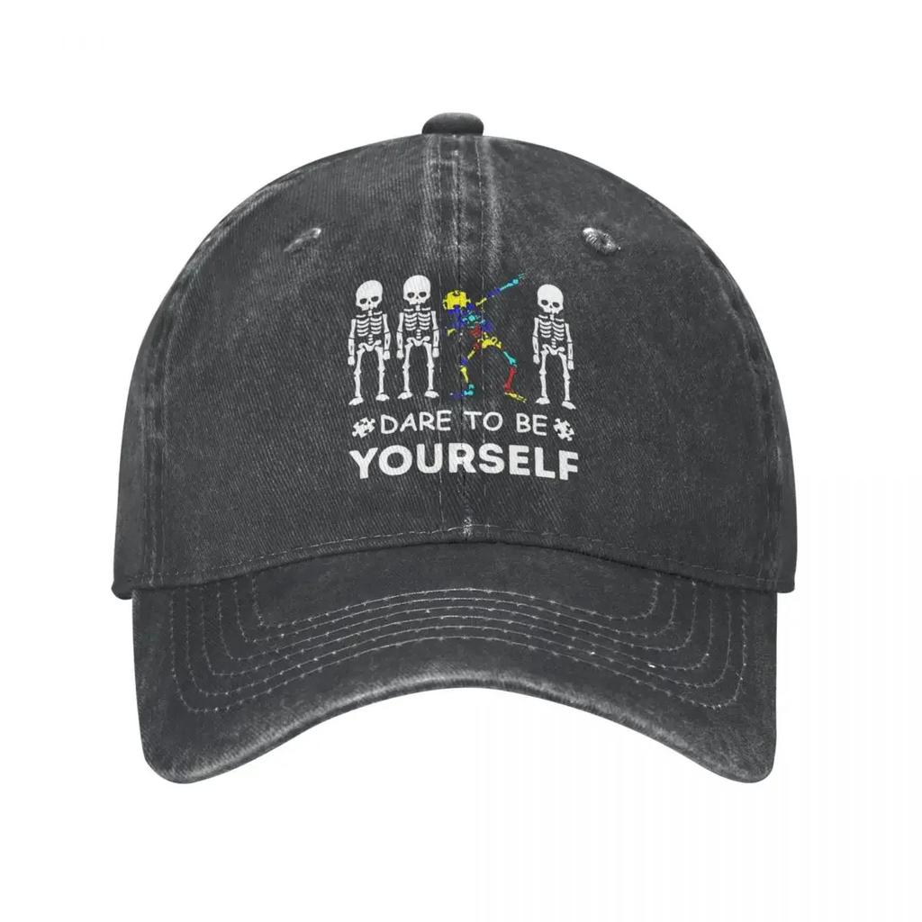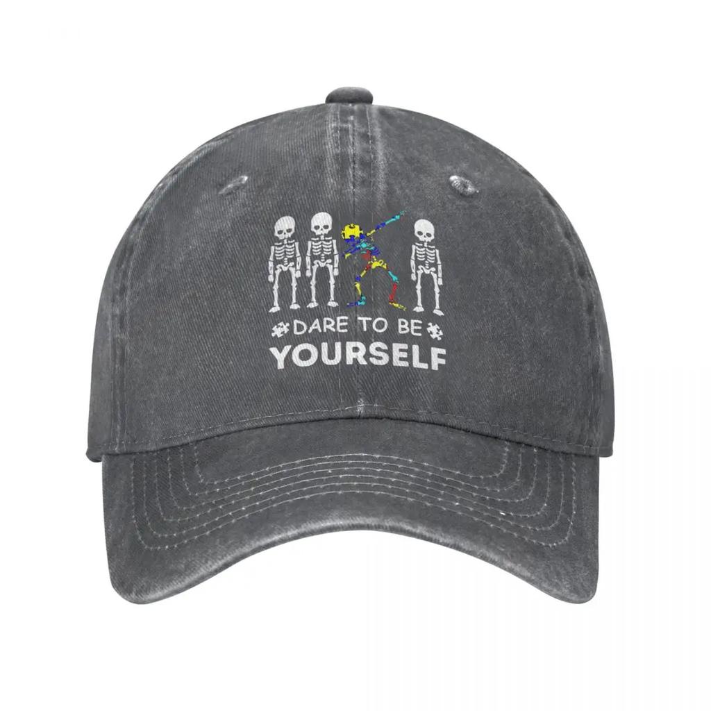 Осмелитесь быть собой Осведомленность об аутизме Скелет Дэббинг Бейсболки Состаренный хлопок Неструктурированные мягкие шапки Кепка