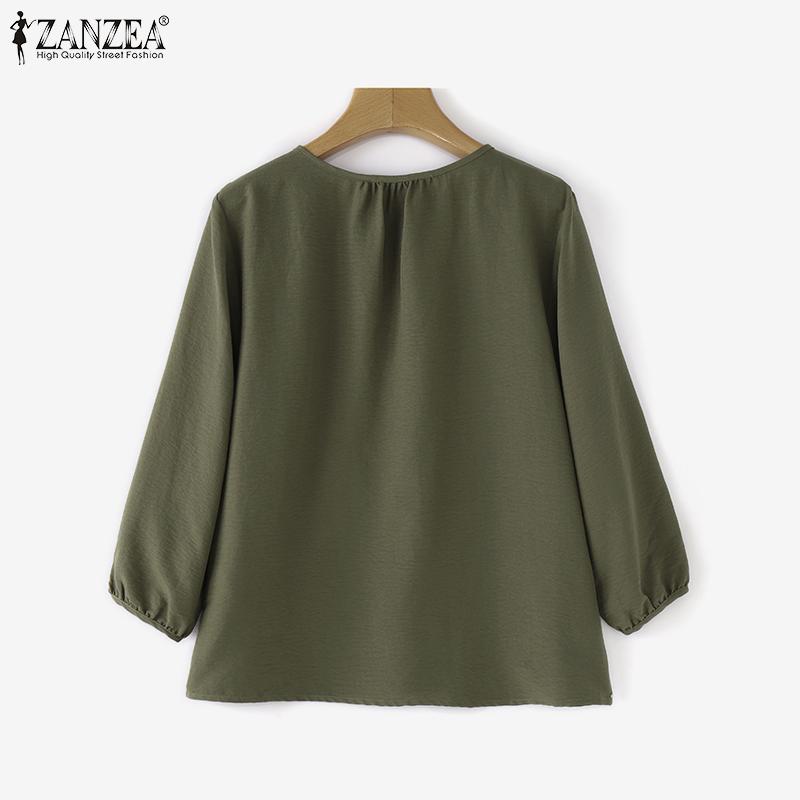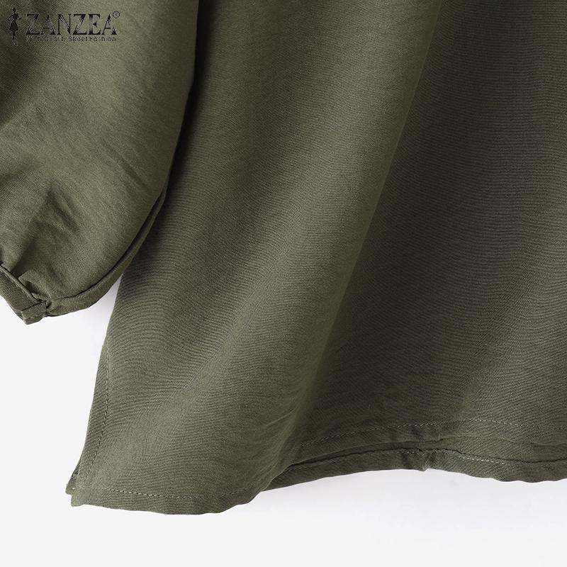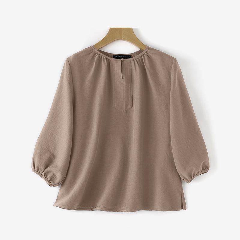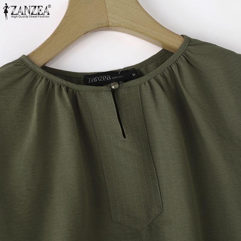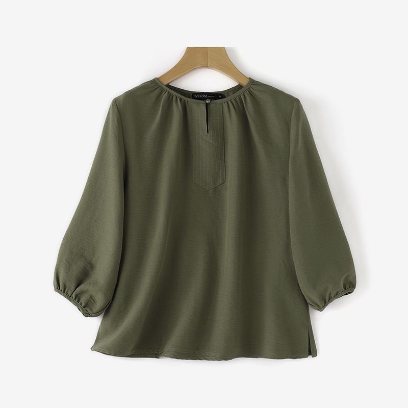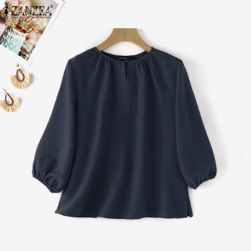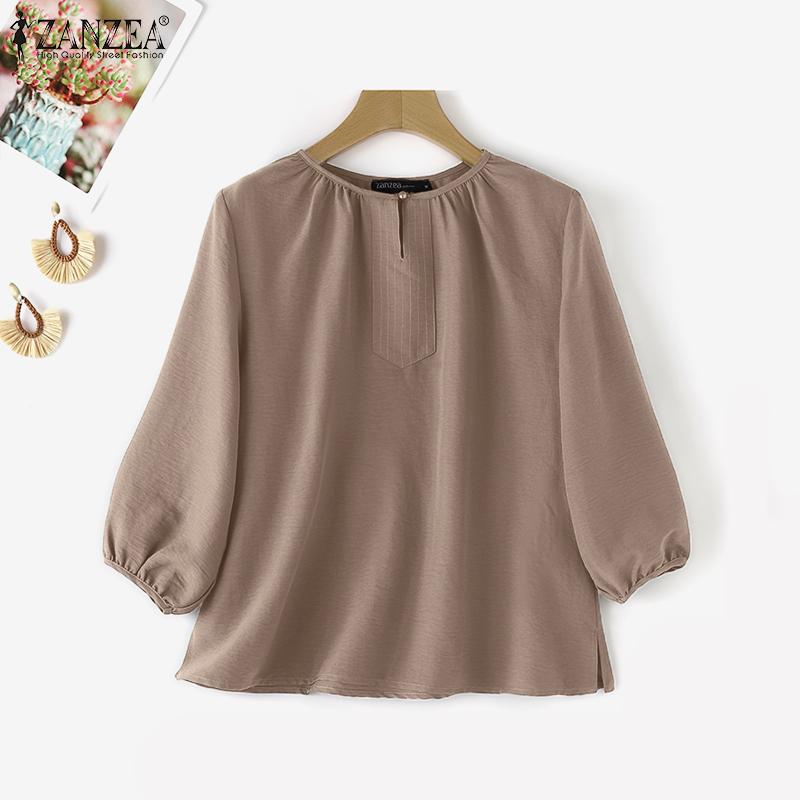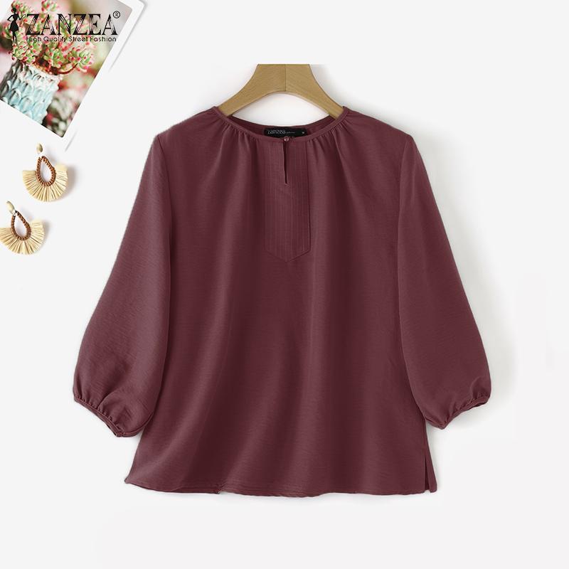 ZANZEA Женские повседневные блузки с круглым вырезом, плиссированные, с рукавами-фонариками и разрезом по низу