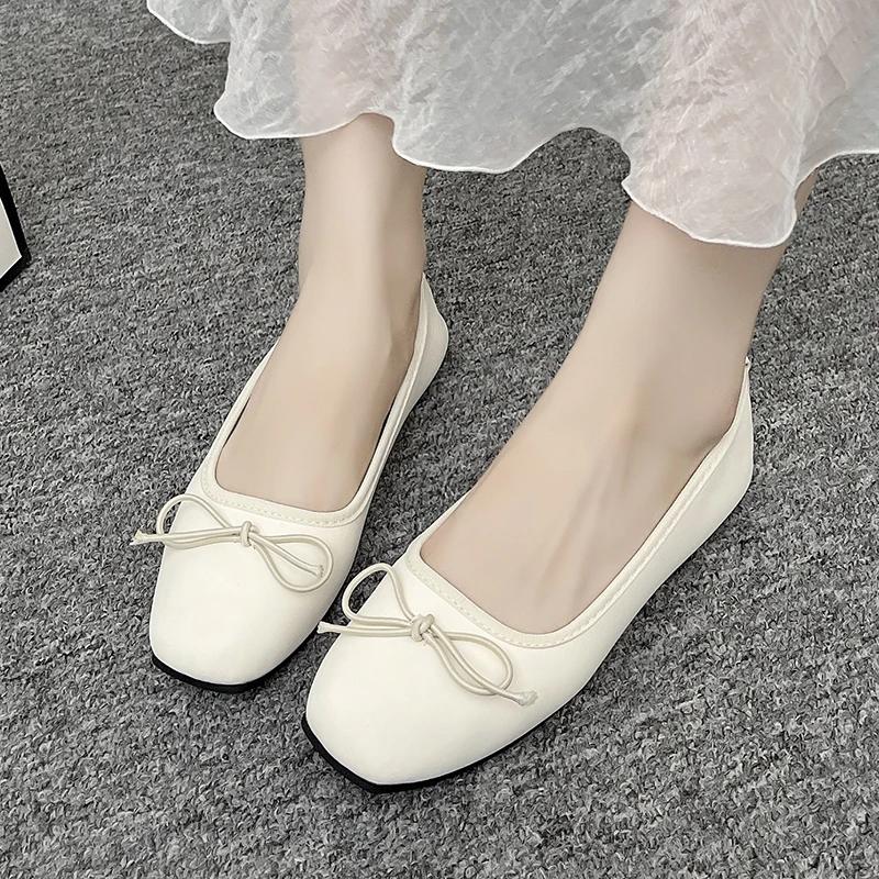 Новые модные однотонные женские туфли на плоской подошве с квадратным носком и бантом, простые повседневные женские туфли на плоской подошве — купить товар онлайн с бесплатной доставкой по всему миру!