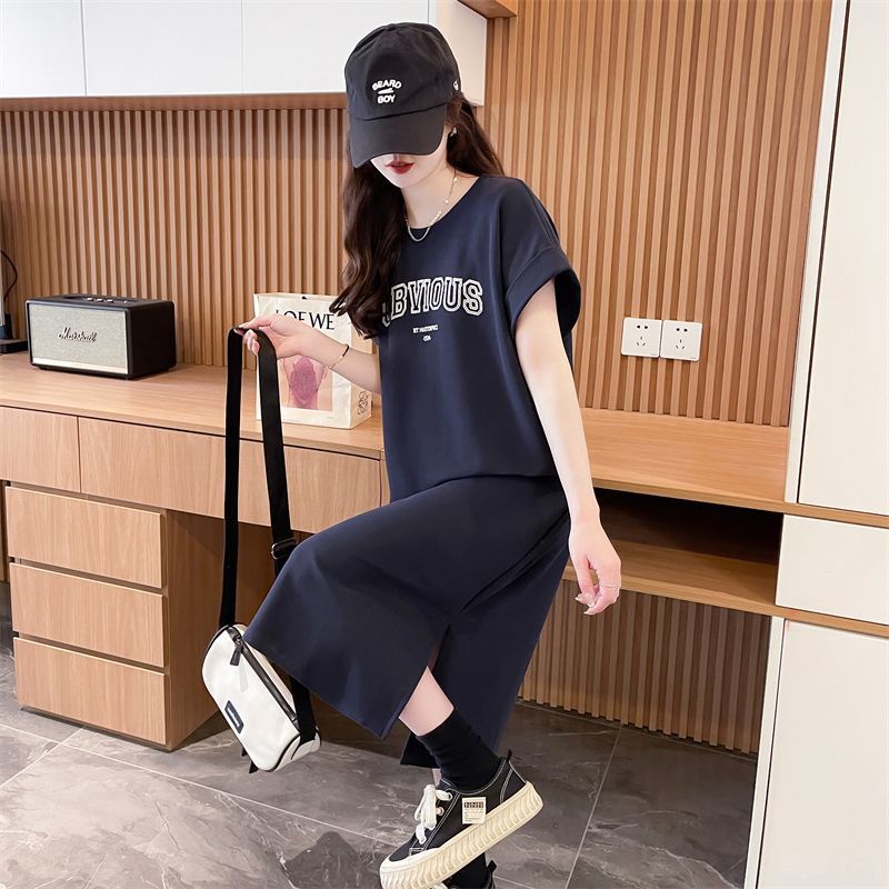 Женское платье-футболка, летнее, ленивое, свободное, утягивающее, с разрезом, короткими рукавами