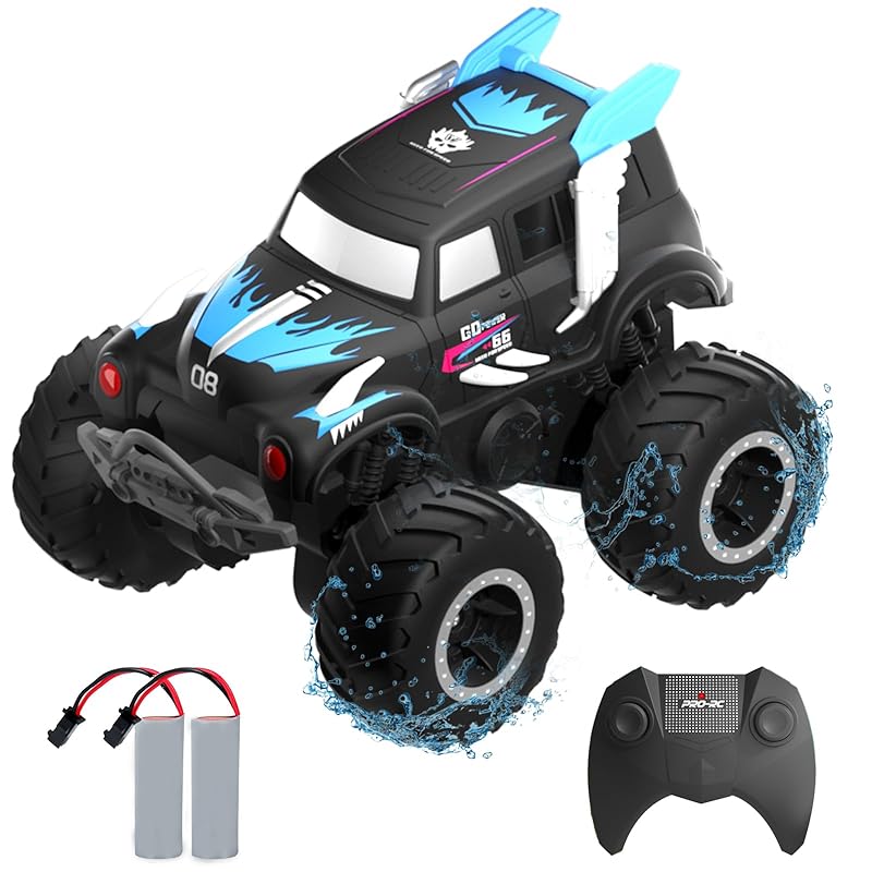 🚀[Amphibious Radio Controlled Four-Wheel Drive]: This 4WD off-road radio controlled car adopts a whole body waterproof design, which not only functions as a normal radio controlled car on land, but also can be used underwater like a radio controlled boat.Children's favorite toy.Fully submersible on both sides, the four high quality soft rubber tires provide buoyancy and power.Two different usage modes provide your child with a richer play experience. This is a perfect gift for boys, girls, birthdays and festivals