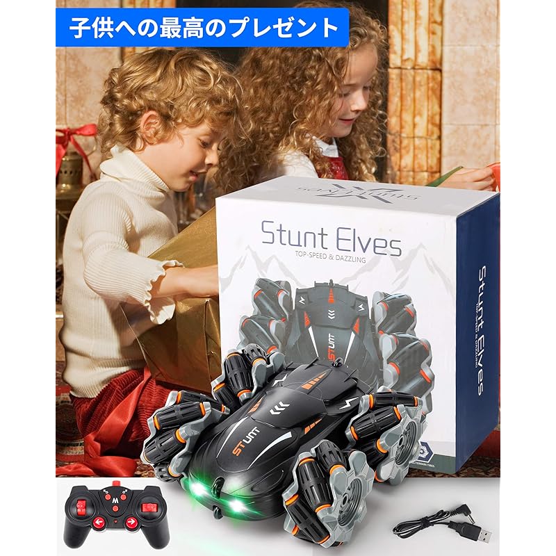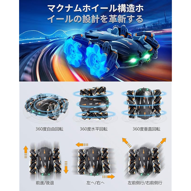[Mecanum wheel design] The four wheels adopt mecanum wheel structure, which can rotate 360°, and have four driving forces, which can drift laterally or move horizontally or straight. Demonstrate all the stunts in one click and instantly capture the attention of children.
