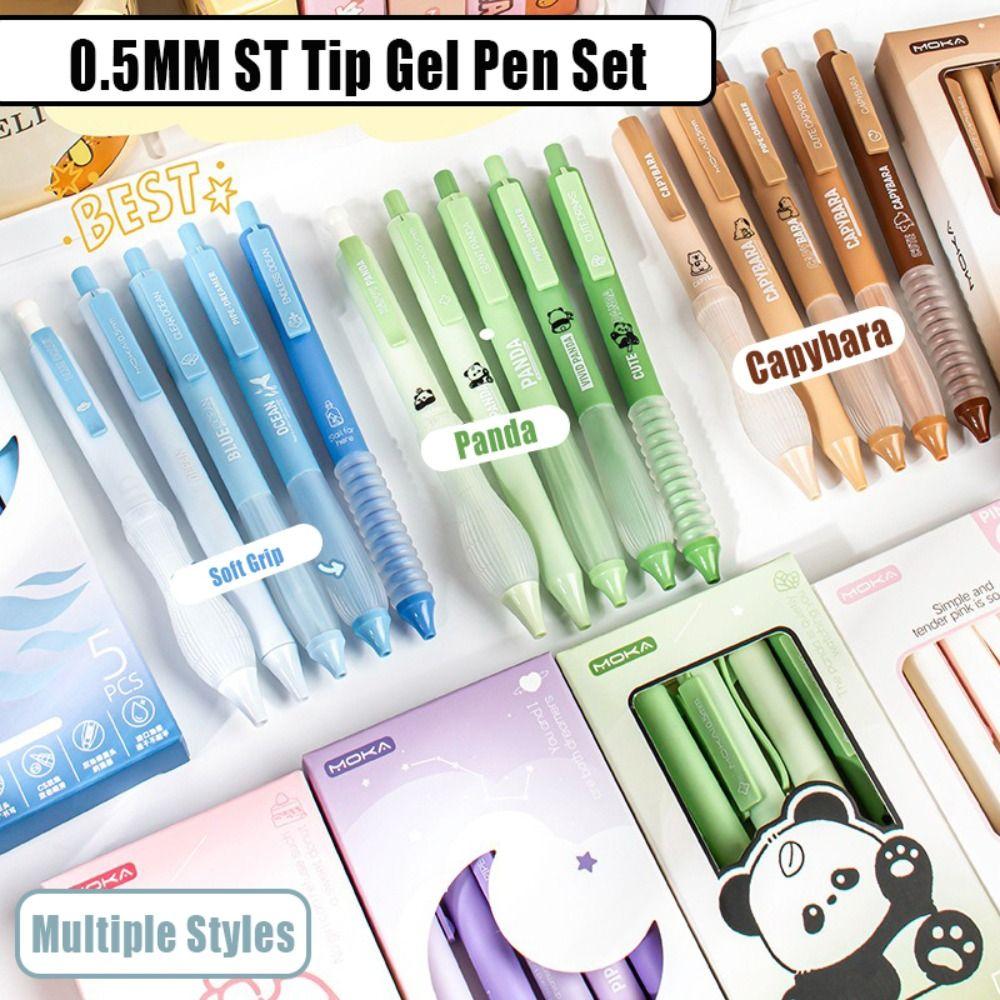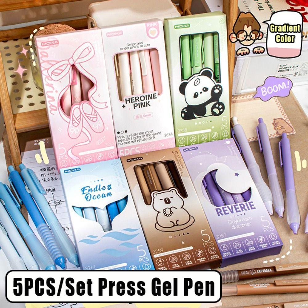 5PCS/Set Press Type Pocket Pen Soft Grip Ballpoint Pen High Quality Office Signature Pen Students
