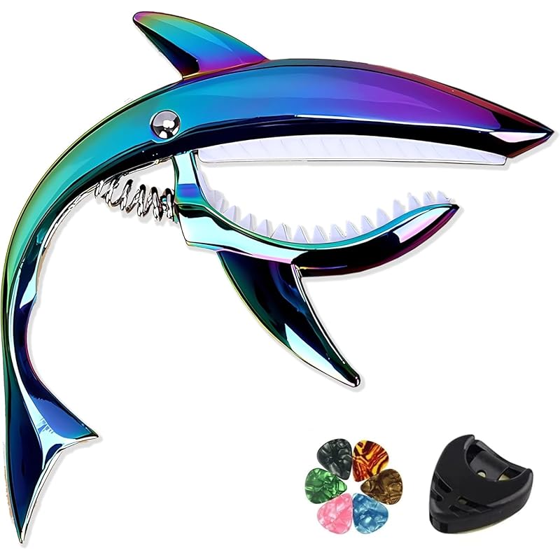 Capotast is made of high quality zinc alloy.Achieved both lightness and durability.In addition, the spring is made of high-performance repositioning steel, has excellent fatigue resistance, and is practical.The capo tast part is made of soft and thick silicone, so it presses down with even force without damaging your precious guitar neck.