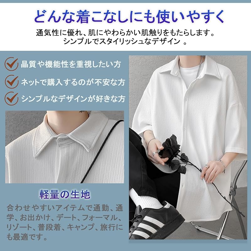 [Дизайн] Мужская рубашка с трехмерным эффектом, которая выражает неровное ощущение с вертикальными полосами. Она создает непринужденное чувство стиля и создает атмосферу элегантности! Поверхность неровная, поэтому даже если вы вспотеете, она не прилипнет к коже, сохраняя сухость и комфорт.