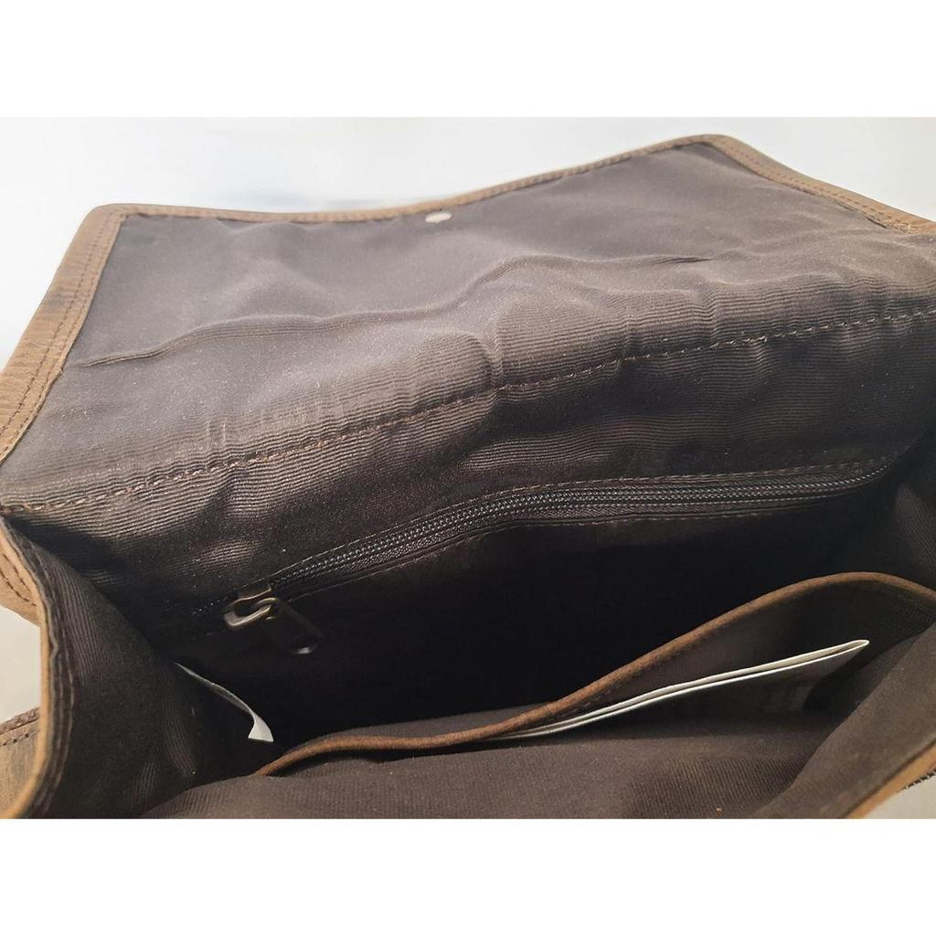 Удобный дизайн: Изделие имеет состаренный винтажный вид, большой передний карман с застежкой-кнопкой и скрытый замок-защелку под основной пряжкой для легкого доступа.