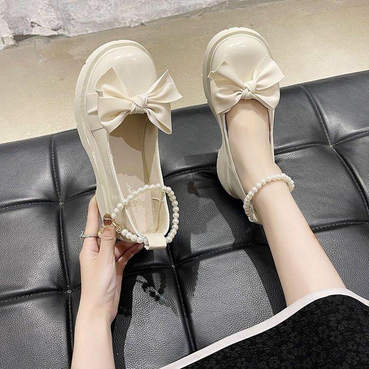 Французские туфли Мэрилин Джейн для девочек весна и осень новые однотонные туфли с жемчужным бантом для девочек на толстом каблуке в стиле феи Lefu