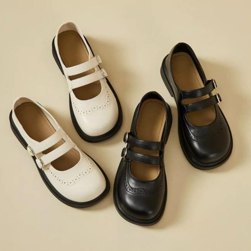 Униформа женские британские туфли Мэри Джейн на плоской подошве в стиле ретро с двойной пряжкой, мягкие боковые туфли на весну и осень, вырезанные для ходьбы