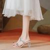 Сандалии с двойным ремешком из французского страза, женские летние феи, на высоком каблуке, прозрачная верхняя одежда с кристаллами, сандалии на толстом каблуке