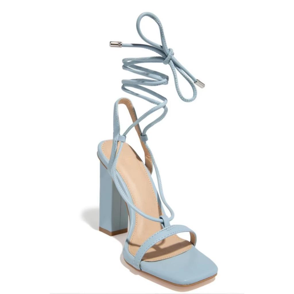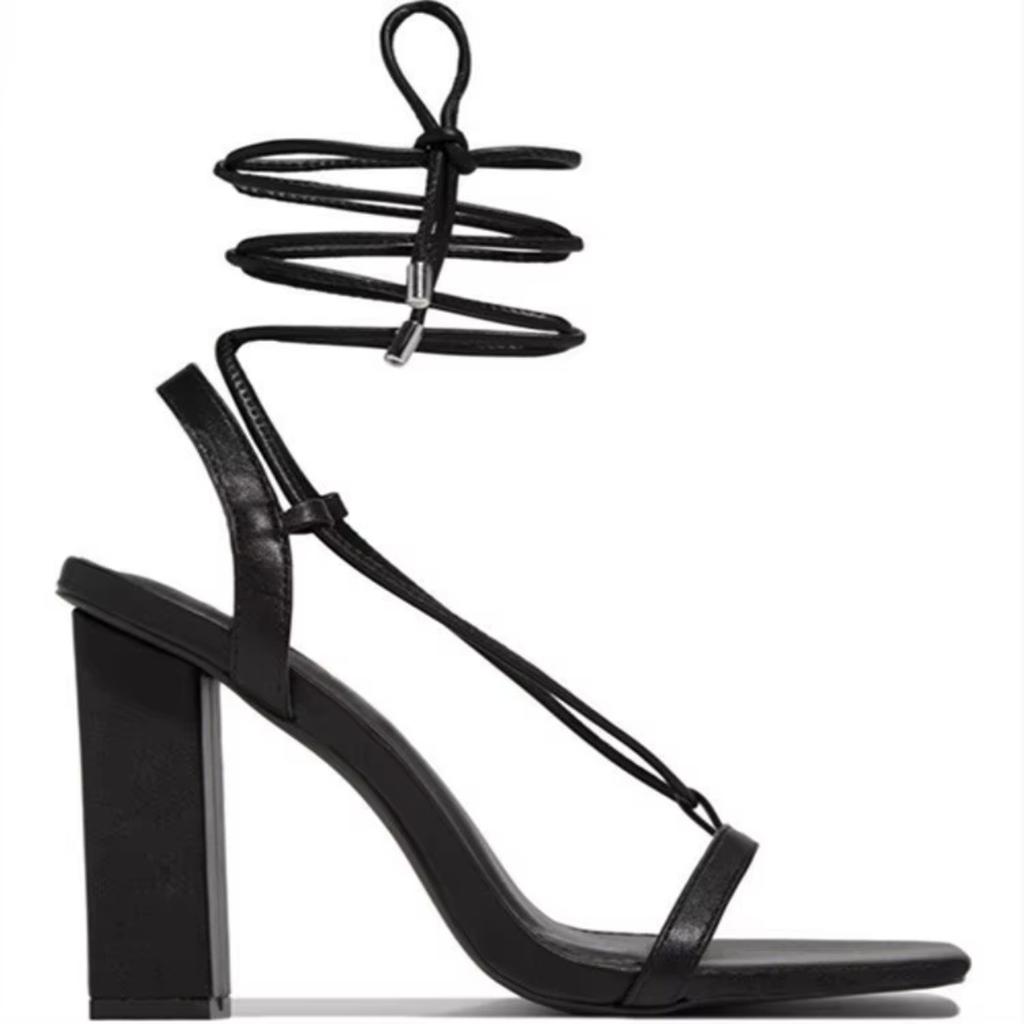 Женские босоножки, летние, новые, квадратные, со шнуровкой, модные, на высоком каблуке, с большим ремешком, на толстом каблуке для женщин