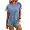 Новая летняя футболка с круглым вырезом, перекрученными внешними швами, короткими рукавами и свободными цветовыми блоками.