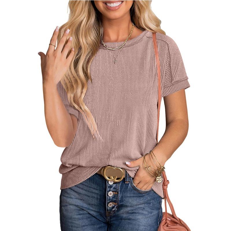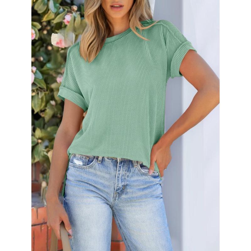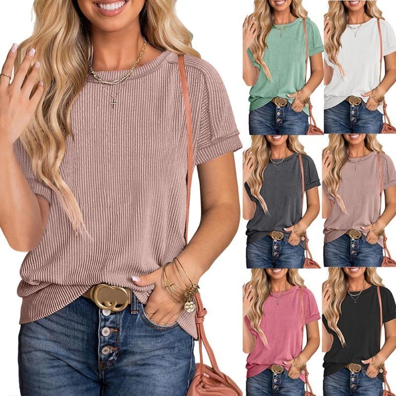 Новая летняя футболка с круглым вырезом, перекрученными внешними швами и короткими рукавами.