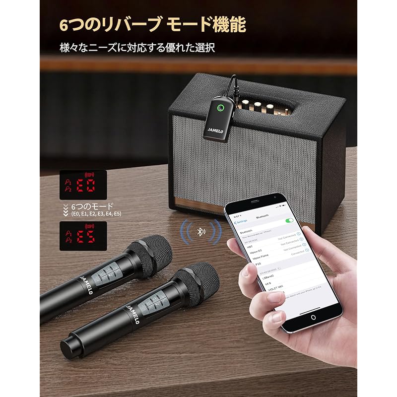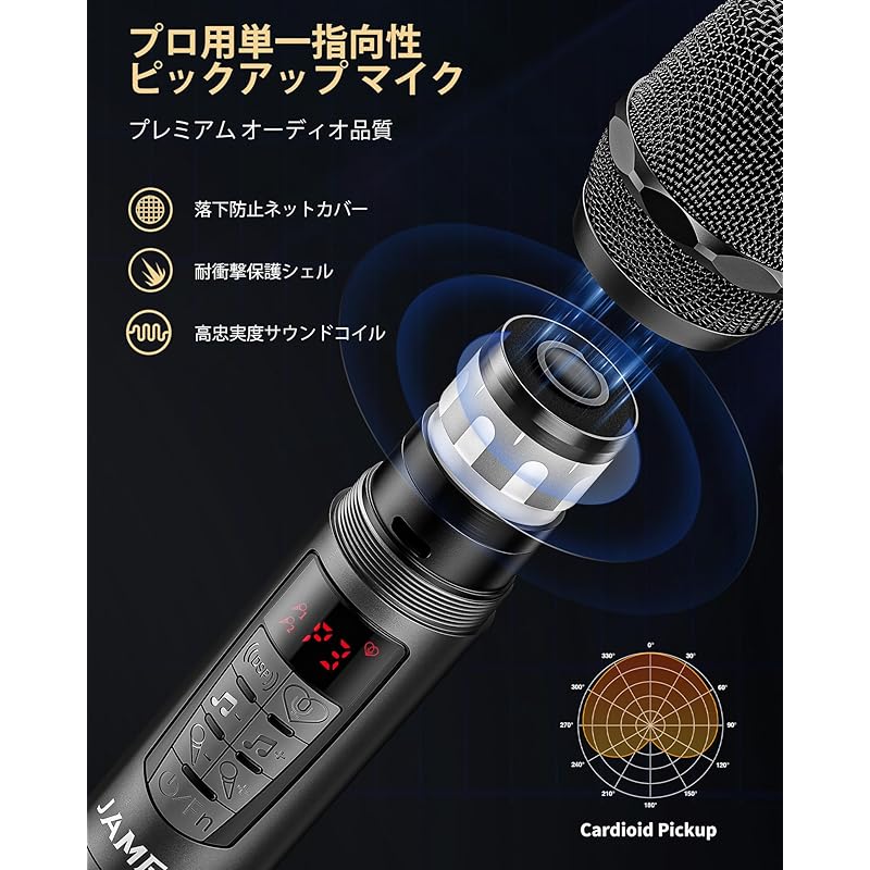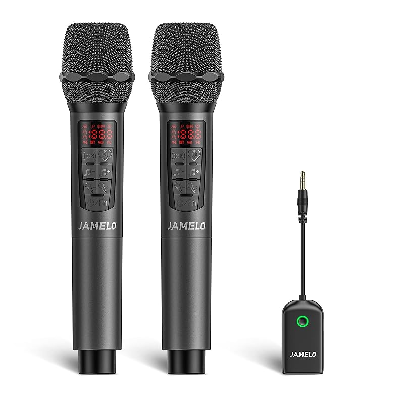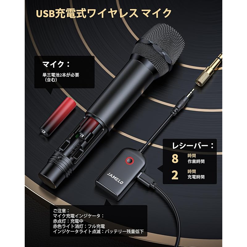 [Long Time Use] JAMELO wireless microphone comes with a 2200mAh rechargeable, the receiver can be fully charged in 2 hours and can be used for up to 8 hours.The convenience of a rechargeable microphone ensures a long-term and reliable power supply for using your handheld wireless microphone, and you no longer have to worry about it running out mid-use! Ideal for long-term use at events and parties.