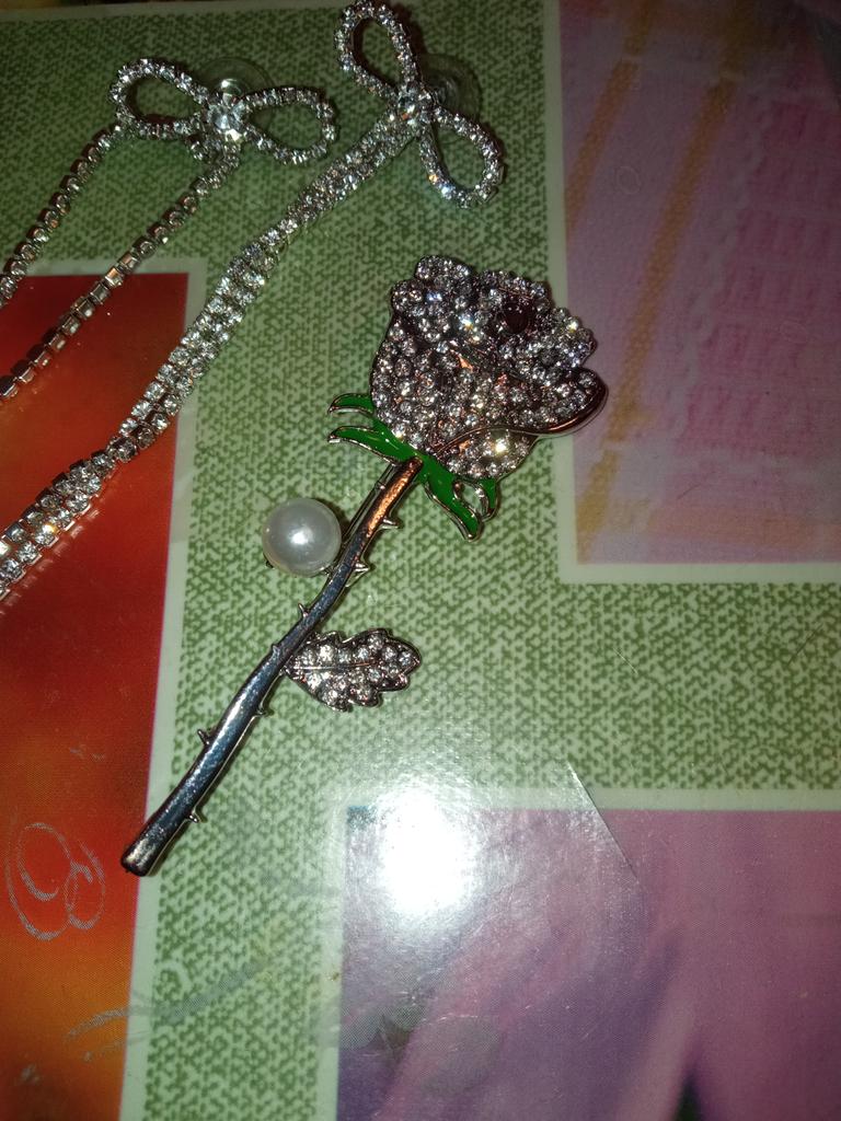 Симпатичная брошка - роза🌹, стразики💎 на солнце красиво переливаются, не маленькая, без повреждений, продавцу спасибо🤗, рекомендую🥰 Заказывала такую же и в золотом💛 варианте. Пришла вместе с двумя помадами💄, колечком💍, резинкой для волос и серёжками в одной посылке, что очень удобно👍