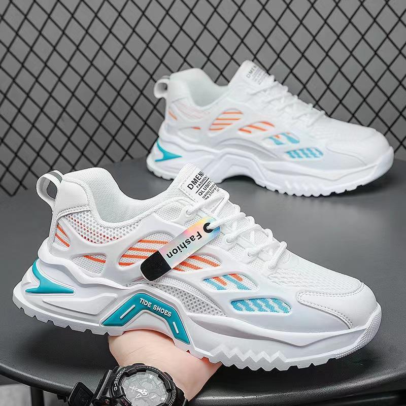 Men's White Breathable Mesh Sports & Casual Shoes New Spring Collection Thick Soled & Anti-Slippery Trendy Fashion